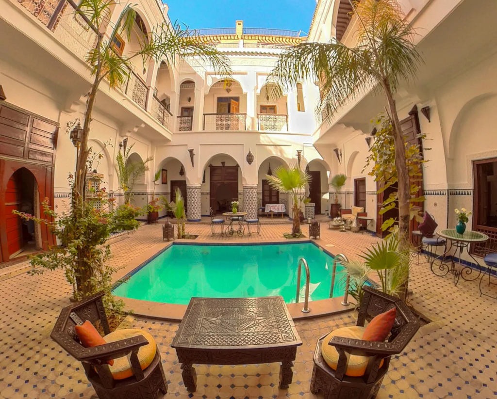 Dar Moulay Ali Situé dans la médina, à quelques pas des souks et de la place Jemaa el-Fna, le Riad Dar Moulay Ali est une maison d’hôtes qui allie l’authenticité de l’architecture marocaine et le confort contemporain. Ce riad intimiste séduit par son atmosphère chaleureuse, son accueil attentif et son cadre raffiné, offrant à ses [...]