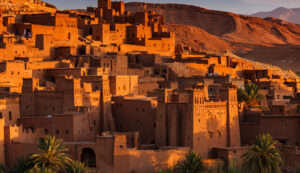 Des paysages désertiques d’une beauté à couper le souffle, des dunes de sable doré qui peuvent atteindre des hauteurs impressionnantes et qui changent de couleur au gré du soleil, des paysages parsemés de palmeraies et d’oasis, véritables havres de fraîcheur face à l’Atlas qui ajoute une dimension spectaculaire à des décors désertiques. Le ciel, d’un bleu éclatant pendant la journée, se transforme en un spectacle de couleurs lors des couchers de soleil, où les teintes orangées et roses se mêlent aux ombres des dunes. La tranquillité du désert, loin de l’agitation des villes, permet de se reconnecter avec la nature et d’apprécier la sérénité de ces paysages uniques. Invitation à l’émerveillement.