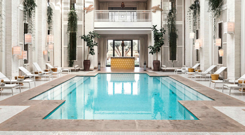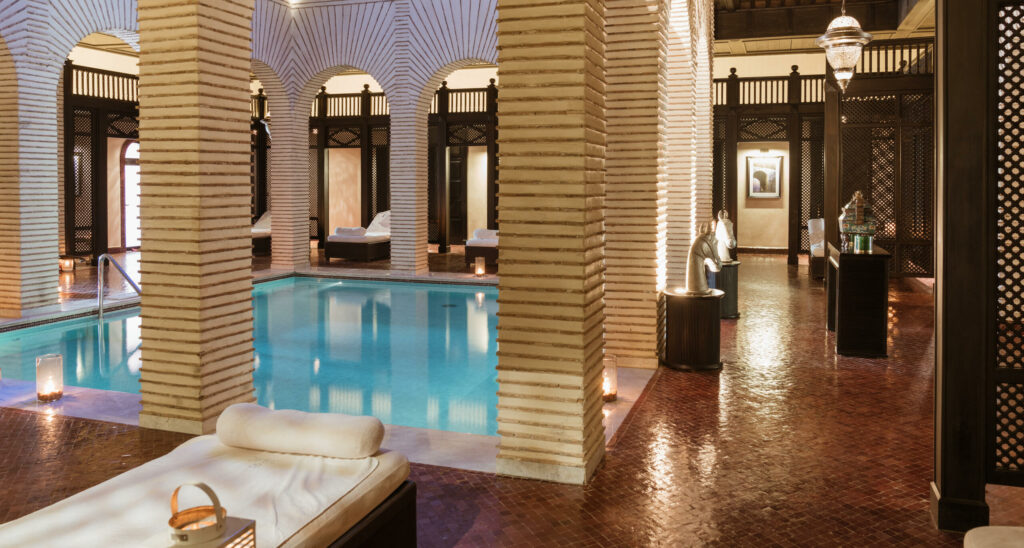 L’art du bien-être à la marocaine : À Marrakech, le bien-être est une véritable tradition ancestrale, un art de vivre qui mêle détente, beauté et sérénité. Entrez dans un univers de vapeur parfumée, où les rituels orientaux sont respectés dans leur plus pure authenticité. Le gommage au savon noir, suivi du gant de kessa, puis le massage à l’huile d’argan ou à l’ambre. Arômes de fleur d’oranger, huiles précieuses, lumières tamisées, murmure de l’eau… Les spas et hammams de Marrakech sont conçus pour éveiller les sens et apaiser l’âme, offrez-vous un moment suspendu hors du temps :