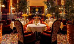 Marrakech s’impose aujourd’hui comme une destination gastronomique incontournable, où les plaisirs de la table sont élevés au rang d’art de vivre. La haute gastronomie s’exprime avec élégance, dans des cadres somptueux mêlant architecture arabo-andalouse, jardins luxuriants, rooftops panoramiques ou décors feutrés dignes des contes orientaux. Invitation au voyage des sens, où les produits nobles du terroir marocain rencontrent le savoir-faire de chefs inspirés, venus du Maroc et du monde entier. Qu’il s’agisse d’un dîner romantique dans un riad confidentiel, d’une expérience culinaire au sein d’un palace ou d’une escapade gustative au cœur de la Palmeraie, la scène gastronomique de Marrakech célèbre l’excellence, la créativité et l’émotion. Explorez notre sélection des meilleures tables de la ville, où la tradition se réinvente et où chaque repas devient une expérience mémorable.