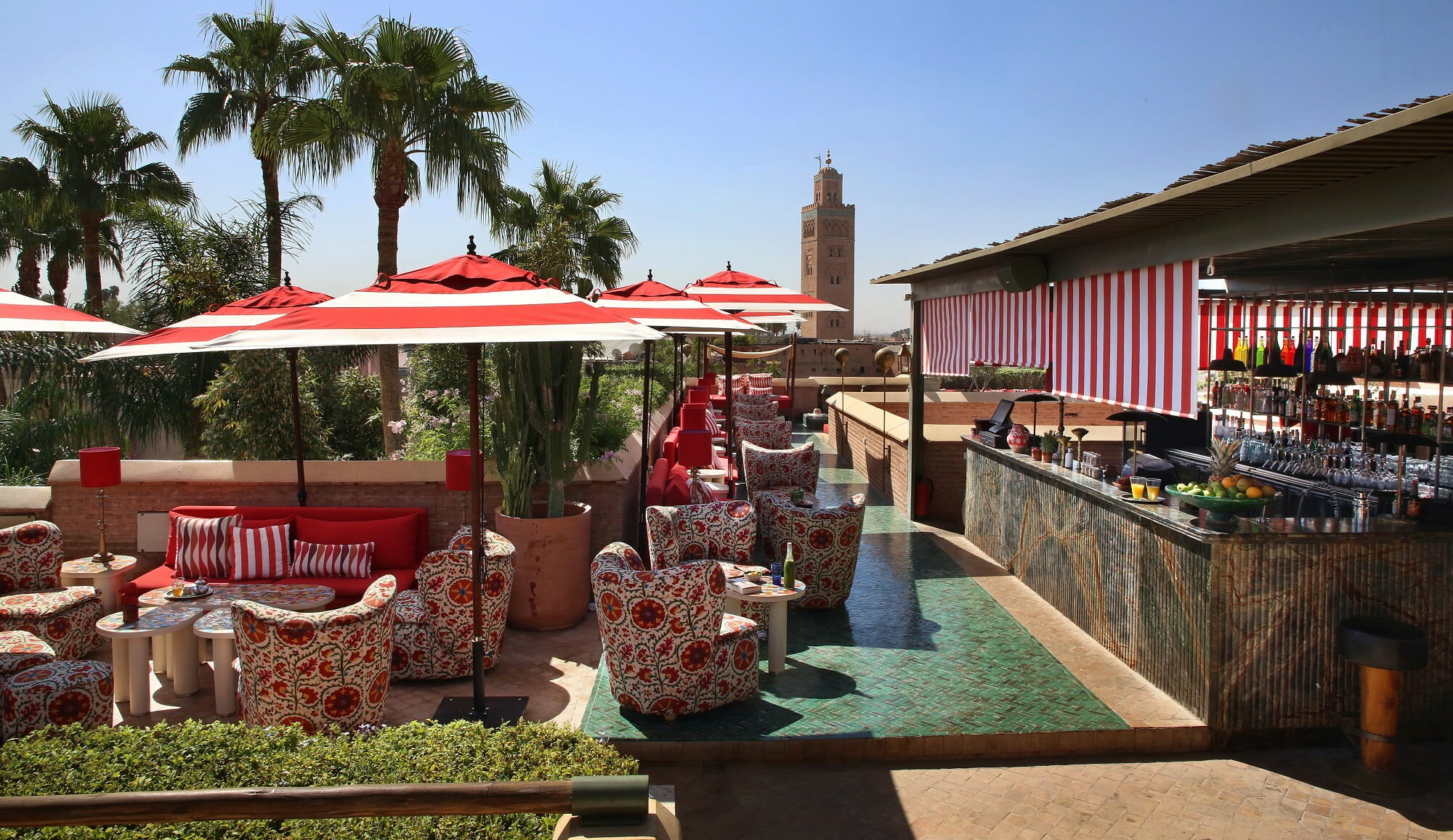 Que ce soit dans la cour intérieure entourée de bougainvilliers ou sur le rooftop avec vue sur la Koutoubia et les montagnes de l’Atlas, chaque moment passé à El Fenn est une expérience sensorielle.