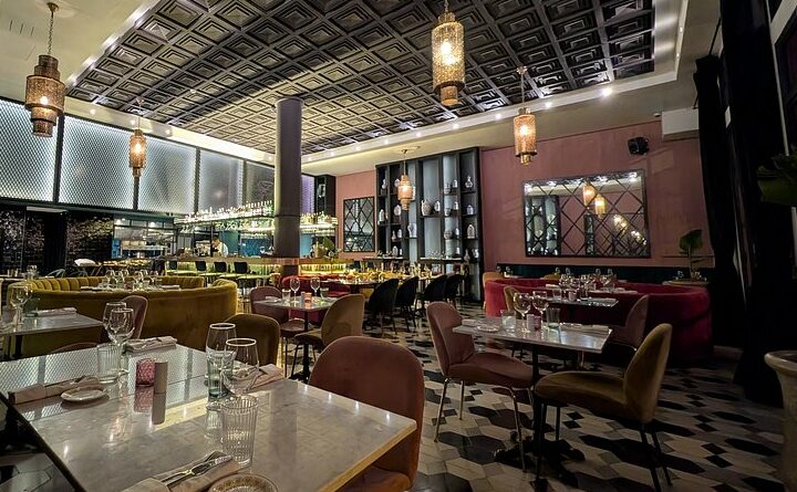 Cuisine marocaine et méditerranéenne raffinée, Décor arty mêlant design et tradition, Terrasse panoramique pour déjeuner, dîner ou boire un verre, Atmosphère apaisante et créative.
