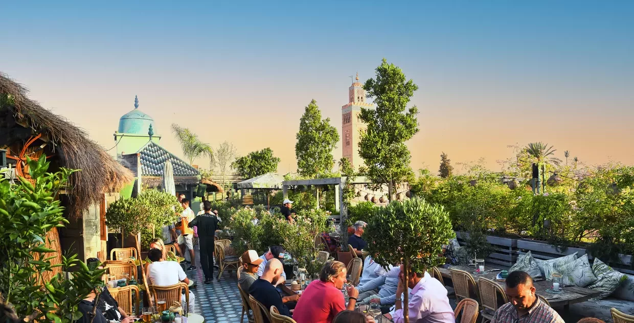 Avec sa vue panoramique sur la médina, ses palmiers luxuriants, son ambiance tropicale chic et ses soirées rythmées par des DJ sets,
