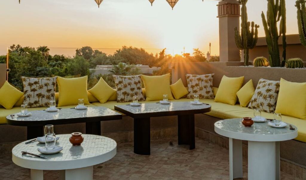 Dans un décor élégant mêlant artisanat marocain et design contemporain, ce riad de charme abrite l’un des restaurants les plus intimistes de Marrakech.
