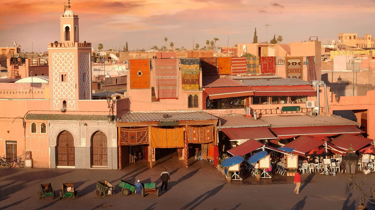Les sons des appels du muezzin résonnent au-dessus des échoppes animées, tandis que l’incontournable place Jemaa el-Fna s’embrase chaque soir au rythme des conteurs, musiciens, charmeurs de serpents et marchands ambulants.