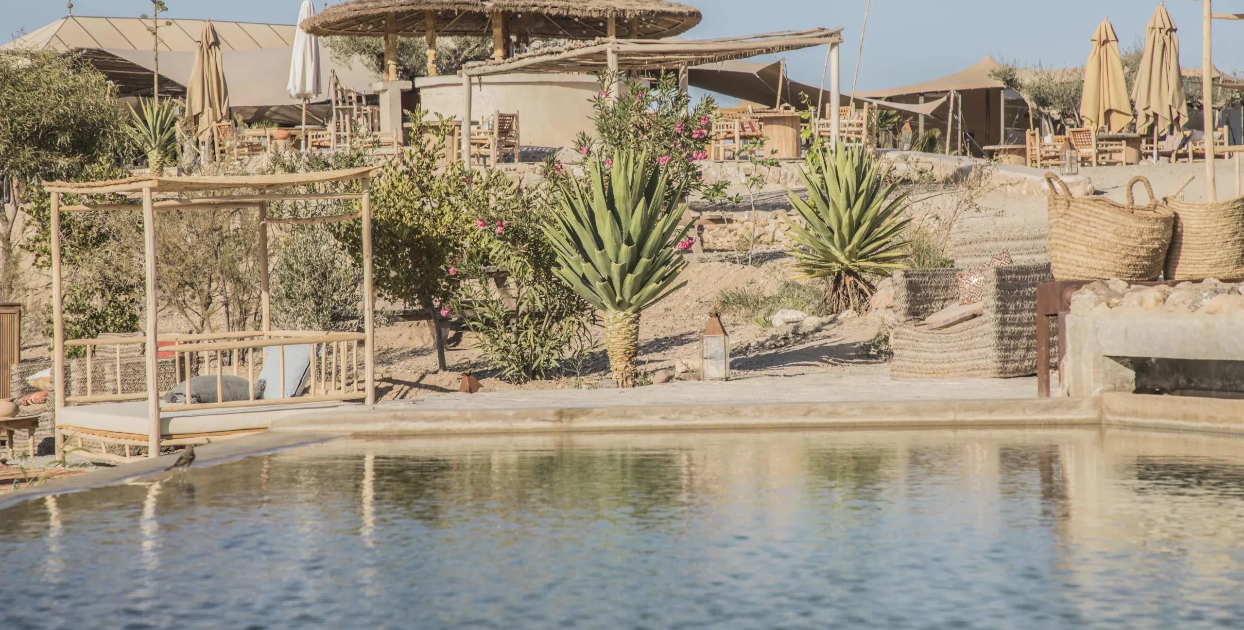 Le camp propose des lodges tout confort au design inspiré des traditions berbères, un restaurant locavore aux saveurs marocaines et internationales, ainsi que de nombreuses expériences: